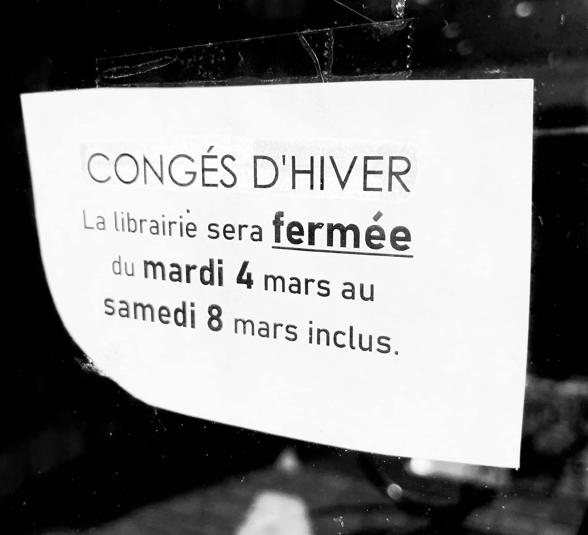 La librairie sera fermée du mardi 4 mars au samedi 8 mars inclus