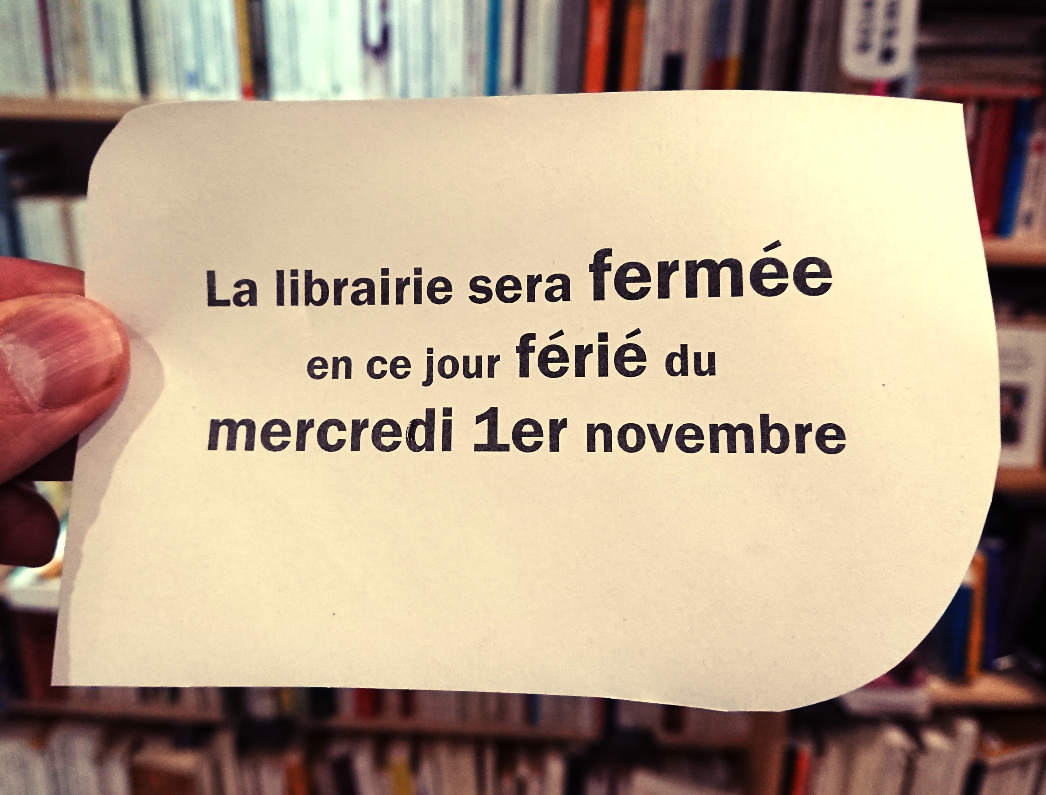 Fermeture ce 1er novembre...